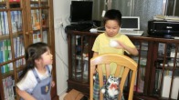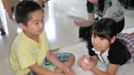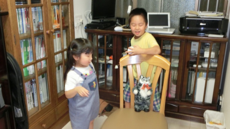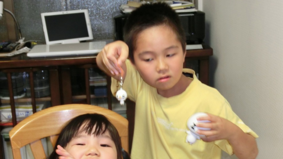 「一言」英哲君の誕生祝いで孫たちがきた。居酒屋で色々なものを頼み、たくさん食べた。英哲君はマグロと玉子を 食べた。その後、虎の門書房で生き物の本などを買った。律子さんが区民祭りで貰ったザックの人形を喜んでいた。